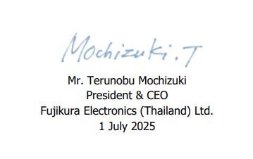 บริษัท ฟูจิคูระ อิเล็กทรอนิกส์ (ประเทศไทย) จำกัด มีความมุ่งมั่นที่จะ :-